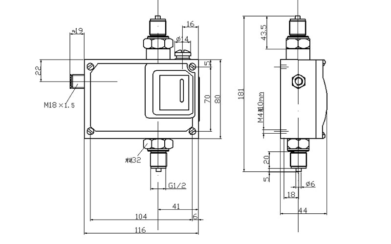 530/7DD差壓開關(guān)外形尺寸及安裝尺寸(單位:mm)