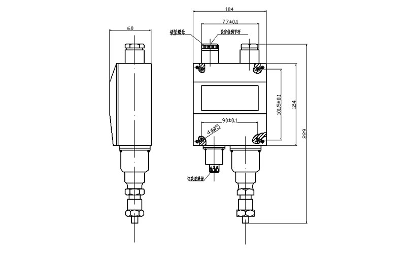 1. YWK-50-C船用壓力開關(guān)指針指示值為下切換值,設(shè)定值調(diào)節(jié)范圍即為下切換值調(diào)節(jié)范圍;