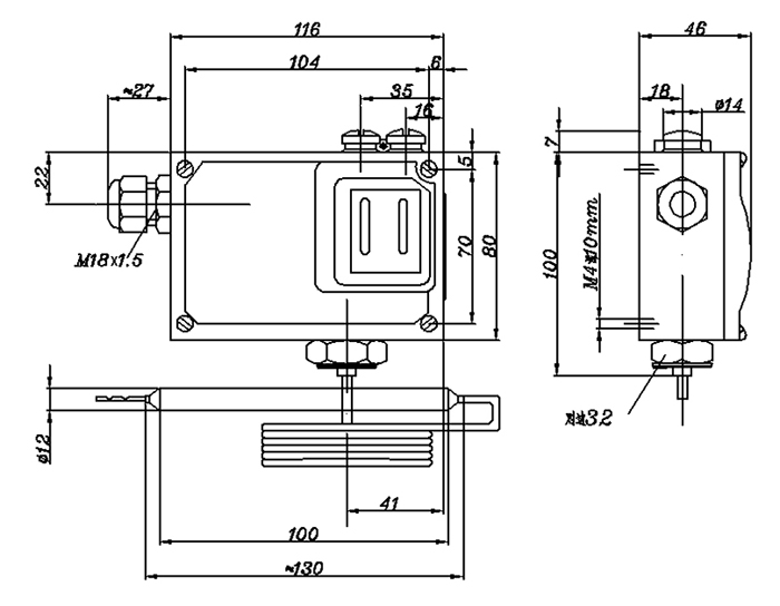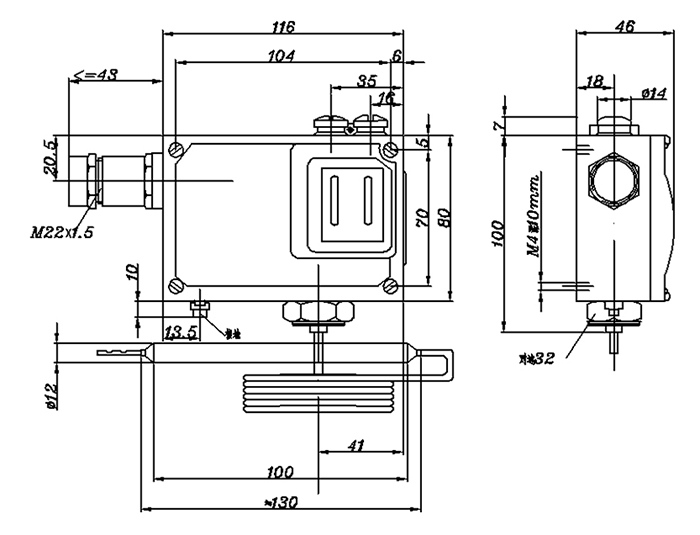 541/7T防爆溫度開關(guān)外形尺寸及安裝尺寸(單位:mm)