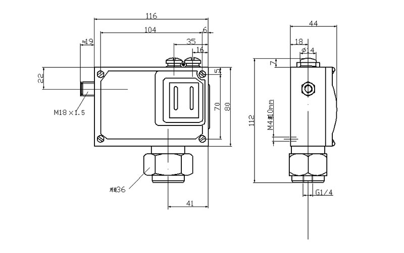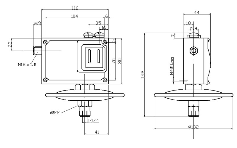 501/7D防爆壓力開關(guān)外形尺寸及安裝尺寸(單位:mm)