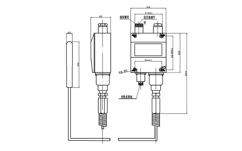 欲控制溫度不超過某一給定壓力值(即上切換值)時,指針應(yīng)調(diào)整在比此給定值低一個切換差值(即下切換值)的位置上,調(diào)整完畢后,不準(zhǔn)再旋動切換差旋鈕;