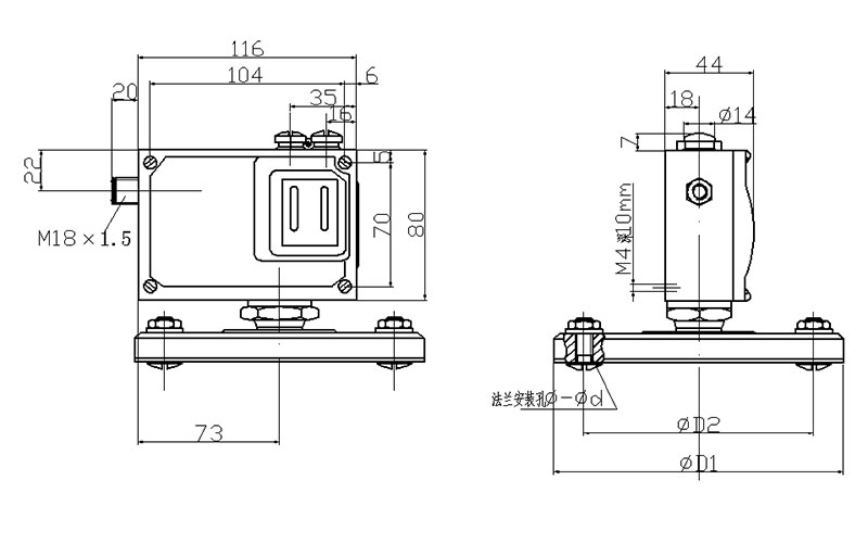 安裝(或拆卸)控制器時(shí)要特別注意:防止傳感器(法蘭盤(pán))與開(kāi)關(guān)殼體發(fā)生相對(duì)轉(zhuǎn)動(dòng)。 若客戶對(duì)法蘭尺寸有特定要求,可協(xié)商定制。