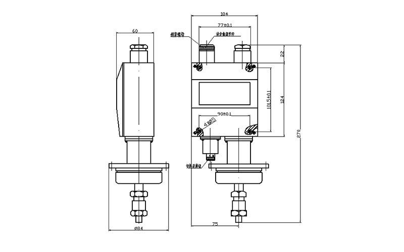 YWK-50-C船用壓力開關(guān)外形尺寸及安裝尺寸(單位:mm)