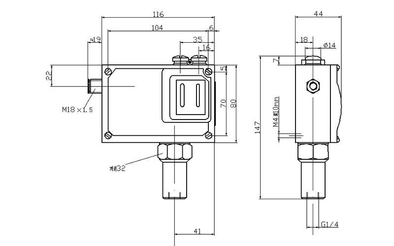 505/7D防爆壓力開關(guān)外形尺寸及安裝尺寸(單位:mm)