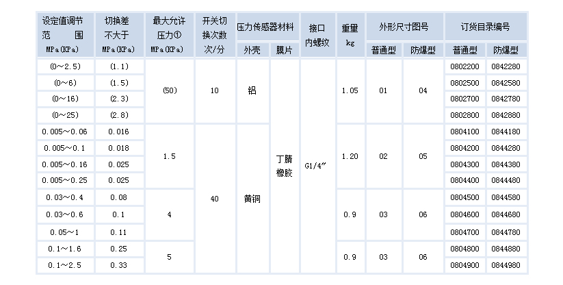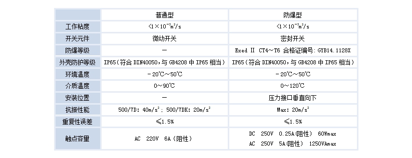 500/7D壓力控制器的設(shè)定值可調(diào),調(diào)節(jié)范圍0~2.5MPa。