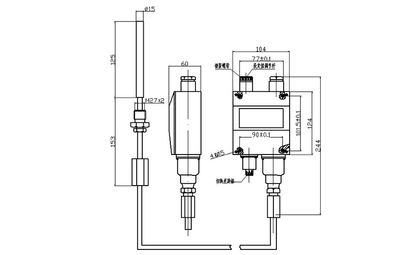 WTZK-50-C船用溫度開關(guān)外形尺寸及安裝尺寸(單位:mm)